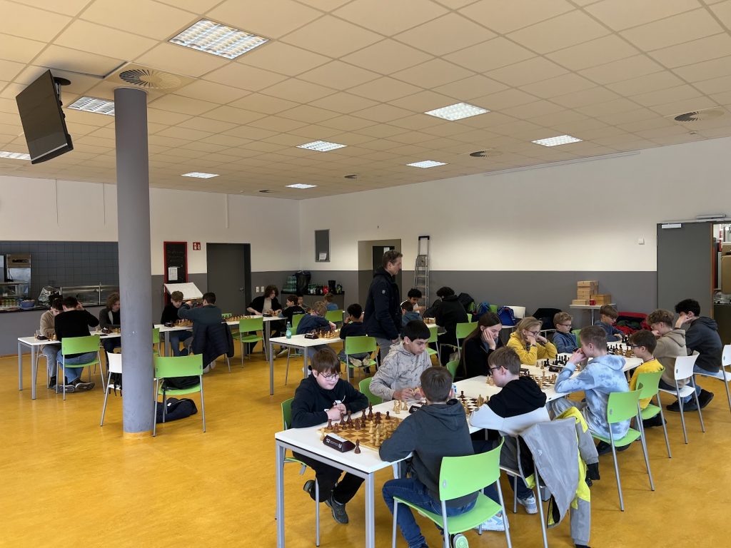 Die Jugendlichen wurden hierbei exzellent versorgt mit Getränken und Knabbereien, einem großen Dank gebührt hier Wilhelm Kratzer, dem Vorsitzendem des Bedburger Schachvereins, der sich hierum kümmerte. Somit konnten die 7 Runden Schweizer System gestärkt bestritten werden, sodass – wie so häufig bei den jungen Spielerinnen und Spielern – sehr taktische und wilde Partien auf das Brett gezaubert wurden. Das große Teilnehmerfeld sorgte entsprechend für hohe Spielqualität und es kam am Ende zu hart umkämpfend Remis, aufgrund von unzureichendem Material oder einem rettenden Dauerschach. Die Turnierspitze bildeten die üblichen Verdächtigen: Markus Schäfer (Sindorf) und Moritz John (Düren Derichsweiler), doch den Turniersieg konnte am Ende Dominik Decker aus Strempt mit 6 aus 7 ergattern. Dieser konnte zuletzt den den dritten Platz beim 3. Grand Slam 2025 erzielen.